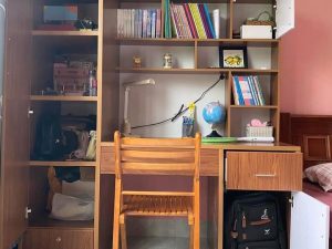 – Phần bàn học: có ngăn kéo chứa đồ tiện lợi và 1 cánh nhỏ để balo, cặp sách hay những đồ dùng học tập,…giúp gọn gàng ngăn nắp.