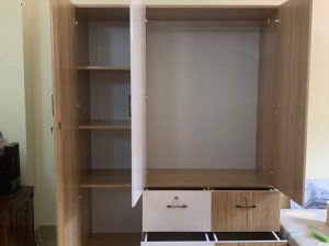 – Buồng đôi 2 cánh :Phía trên để treo quần áo dài hay quần áo vét, phía dưới để quần áo gấp hay chăn mỏng. Còn có 4 ngăn kéo sâu rộng, mặt ngăn kéo 30cm (lòng ngăn kéo sâu 25cm) để quần áo, đồ lót hoặc vật dụng nhỏ nhẹ, ngăn kéo giúp chúng ta phân loại đồ 1 cách dễ dàng